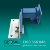 For use with DICTATOR hardware’s sliding gate radial damper where the gate is on an incline or uneven ground as a mount bracket that allows the radial damper to articulate or move up an down to ensure the radial damper’s pinion teeth remain in contact with the gate rack at all times.